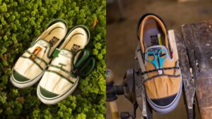 A divisão Vault by Vans tem o orgulho de colaborar com a designer e artista Nicole McLaughlin em uma coleção que destaca seu amor pela natureza e jardinagem vintage. Conhecida por suas peças recicladas, a artista transforma o Vans Slip-On VP VR3 LX em uma obra de arte prática e divertida, utilizando uma mistura de materiais reciclados e de origem responsável.