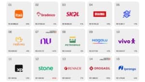 Além da farmacêutica, outras três marcas apresentaram crescimento de dois dígitos que merecem destaque: Porto (14%), PagBank (ex-PagSeguro) (13%) e o Nubank (12%). Por outro lado, Renner (-11%), Havaianas (-11%) e Natura (-8%) apresentaram a maior queda.