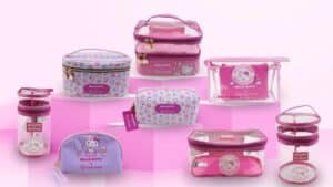 A coleção Hello Kitty by Klass Vough é composta por mais de 30 itens que são maletas, nécessaires, esponjas, pinças, pincéis, esponjas, escova de limpeza facial, limpador, faixa para cabelo e toalha demaquilante. Confira: