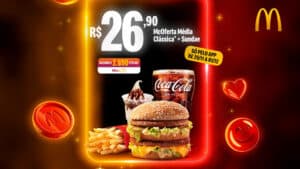 - McOferta Média Clássica (Big Mac, Cheddar ou Quarteirão) + Sundae por R$ 26,90
