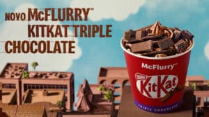 O novo McFlurry KitKat Triple Chocolate, já está disponível para compra através dos canais oficiais da marca como delivery e app do McDonald’s. O item também pode ser encontrado em todas as lojas físicas da rede de restaurante espalhadas pelo Brasil pelo preço sugerido de R$ 16,90.