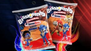 As embalagens da Bisnaguinha Seven Boys em collab com Sonic 3, chega ao mercado com design inspirado nos três mascotes da fabricante – Lucas, Julia e Davi – e nos protagonistas do filme Sonic 3 – Sonic, Tails e Knuckles. Ao todo, serão quatro embalagens coloridas de 300 gramas.