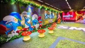 Quem entrar na estação, vai se sentir caminhando pela Vila dos Smurfs, com personagens em alto relevo, banquinhos em formato de cogumelo e iluminação especial. A ambientação acontece até o dia 21 de julho. No dia 15, haverá uma ação especial, com a presença dos Smurfs entre 14h e 16h.