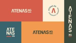 A partir de agora, o logo passa a ter cores que representam os quatro pilares da ATENAS.ag: o laranja dendê simboliza a criação com identidade, o verde mata remete à cultura brasileira e representatividade. Já o azul horizonte faz alusão a planejamento e estratégia e, por fim, o creme praia equivale ao relacionamento e presença contínua. Além disso, o novo logo inclui o .AG com traço inferior como parte oficial, que funciona como alicerce gráfico e assinatura elegante. E o A, de ATENAS, se torna um espaço simbólico, uma moldura para ideias, estratégias e cultura.