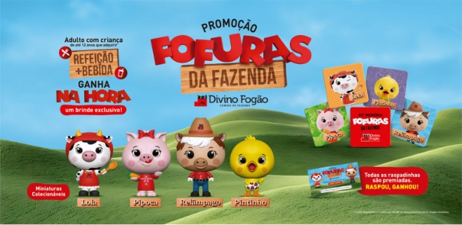 O Divino Fogão, rede brasileira de restaurantes fundada em 1984, anunciou que entre os meses de outubro e novembro deste ano, irá lançar colecionáveis inspirados nos animais da fazenda para o Dia das Crianças. A campanha ‘Fofuras da Fazenda’, tem como objetivo de aproximar as crianças dos animais que são encontrados no interior.