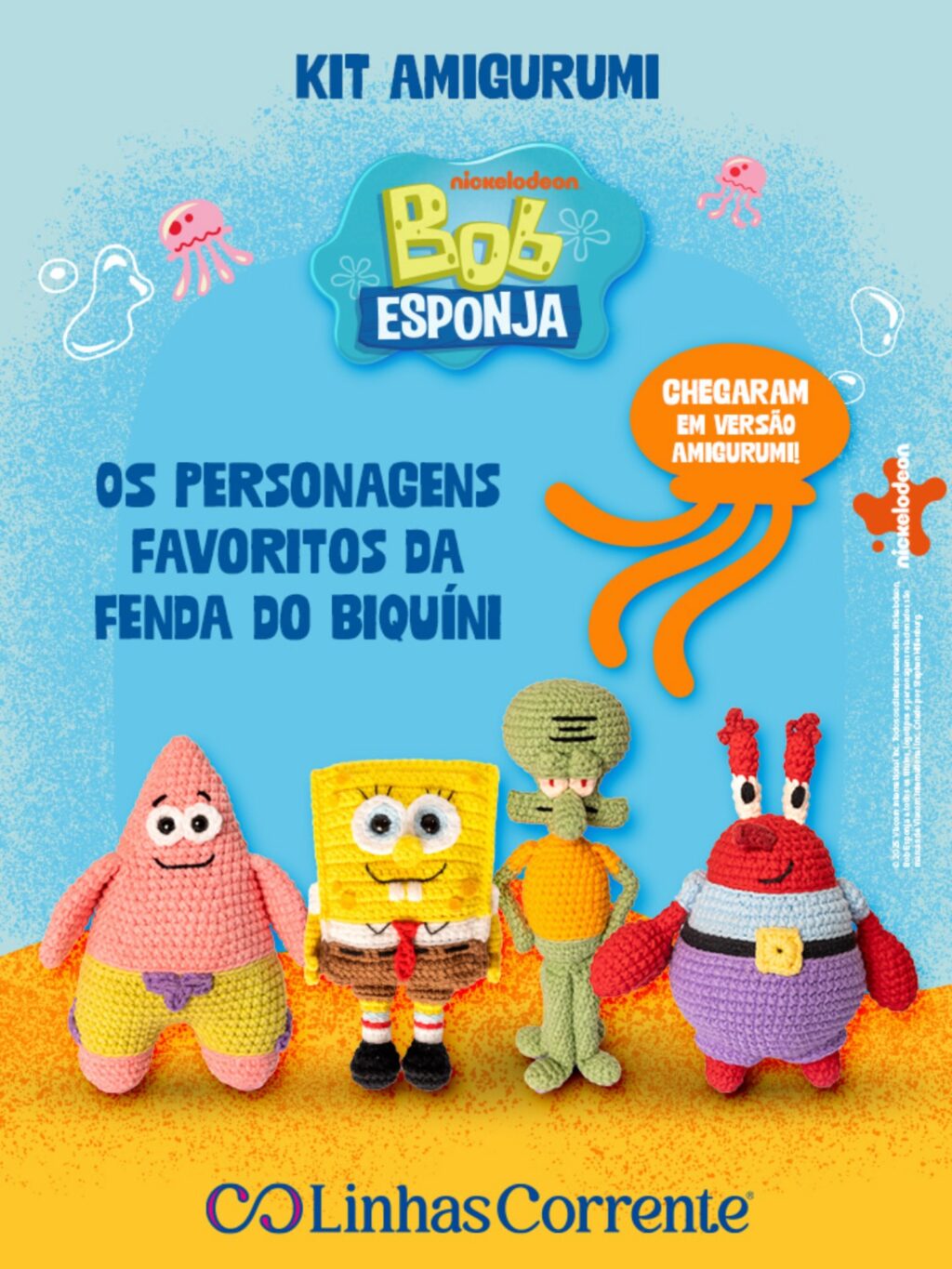 A Linhas Corrente, marca brasileira do setor têxtil, anunciou o lançamento oficial do Kit Amigurumi Bob Esponja, que leva para o universo dos crochês os personagens mais icônicos da Fenda do Biquíni: Bob, Patrick, Lula Molusco e Siri Cascudo, em parceria oficial com a Paramount.