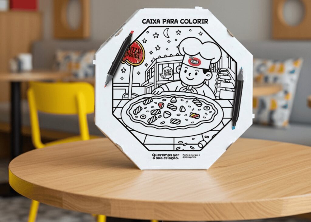 Para tornar o momento ainda mais divertido, a Pizza Prime preparou uma caixa especial que, com design temático, traz um desenho de pizzaiolo para colorir, convidando os pequenos a soltarem a imaginação enquanto comem as novas pizzas.