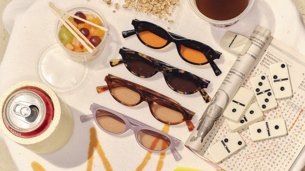• Coleção apresenta quatro modelos de acetato, incluindo o Tuca com estampa de tucano, disponíveis em várias cores.