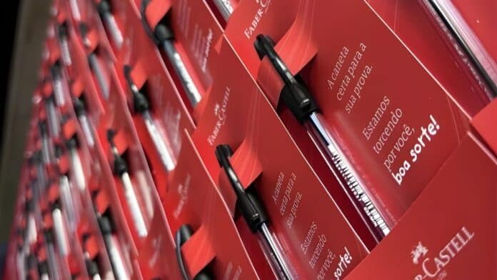 A Faber-Castell e a Faculdade Anhanguera anunciam uma ação nacional para a distribuição de 60 mil canetas esferográficas pretas, um dos itens obrigatórios para o exame. A ação ocorrerá em locais estratégicos de prova nas cidades de São Paulo e Salvador.