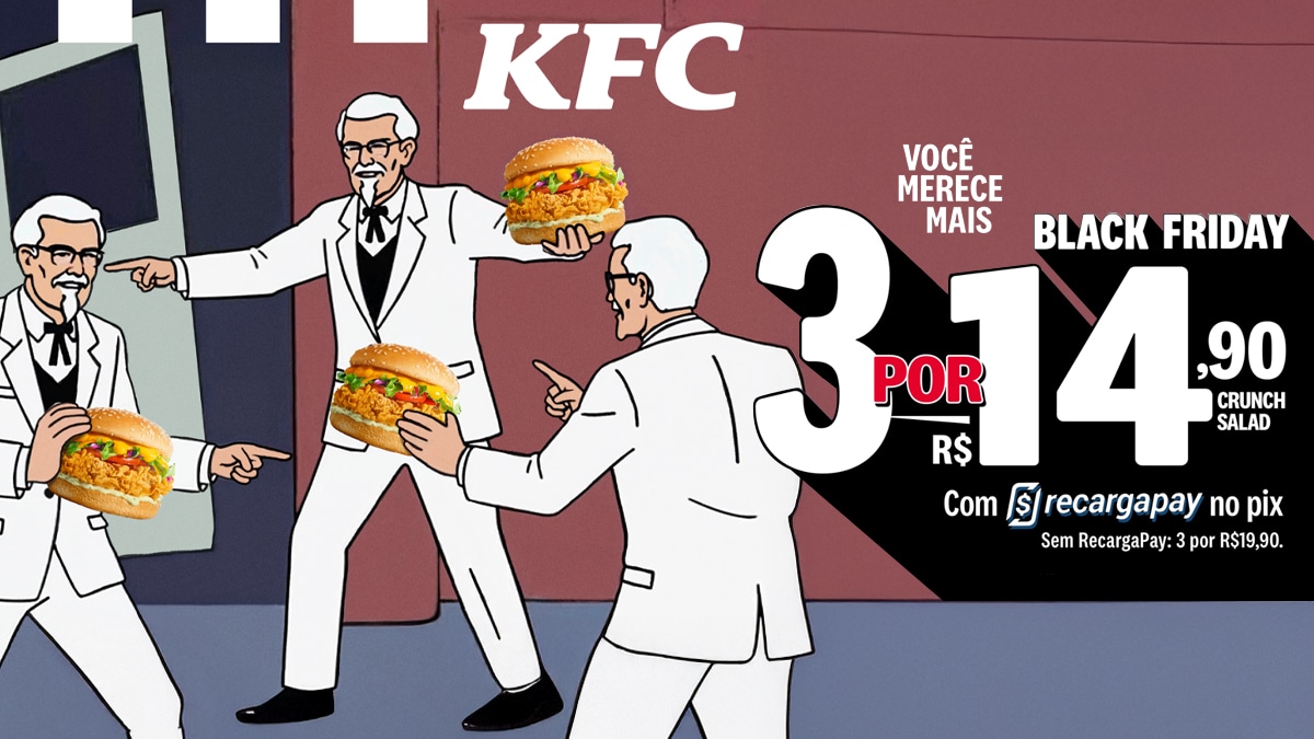 “A Black Friday é uma das datas mais importantes para o varejo brasileiro e uma grande oportunidade para atrair tanto os KFC lovers quanto novos consumidores. Neste ano, optamos por reforçar a nossa promoção mais icônica, de 2 Crunch Salad por R$ 19,90, e deixá-la ainda mais atrativa – leva-se 3 ao pagar por 2 -, oferecendo mais benefício com um sanduíche a mais pelo mesmo valor! É uma oferta que entrega qualidade e quantidade a um preço extremamente competitivo”, conta Fernanda Harb, Diretora de Marketing e Vendas do KFC Brasil.