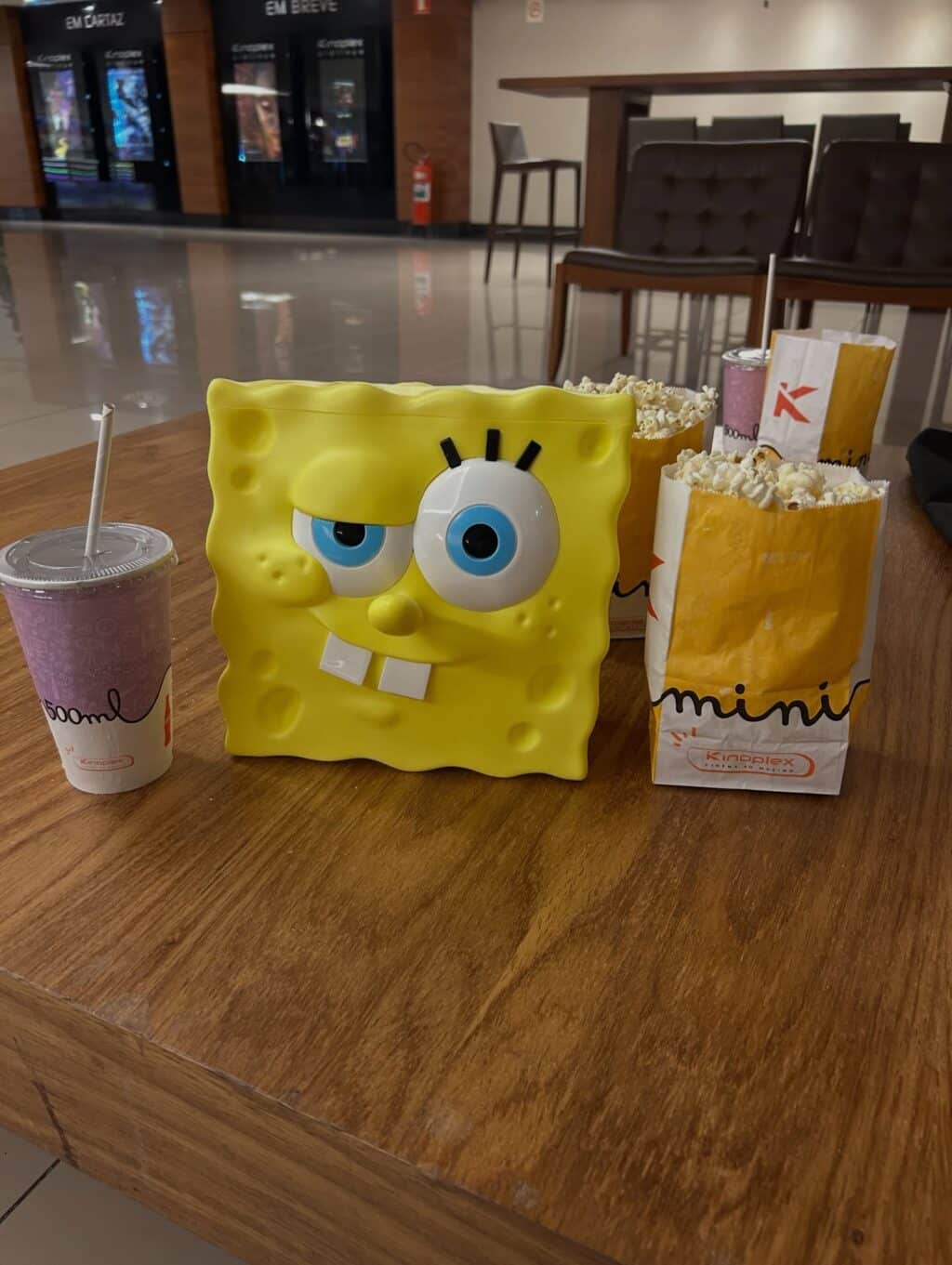 O Kinoplex apresentou em suas redes sociais, em formato de photodump, o item colecionável inspirado em Bob Esponja. A publicação brinca com o personagem ao afirmar que “o balde do Bob simplesmente saiu fazendo tour pelo Kino”. O produto chega com tampa e design que recria o rosto do protagonista da animação. Confira: