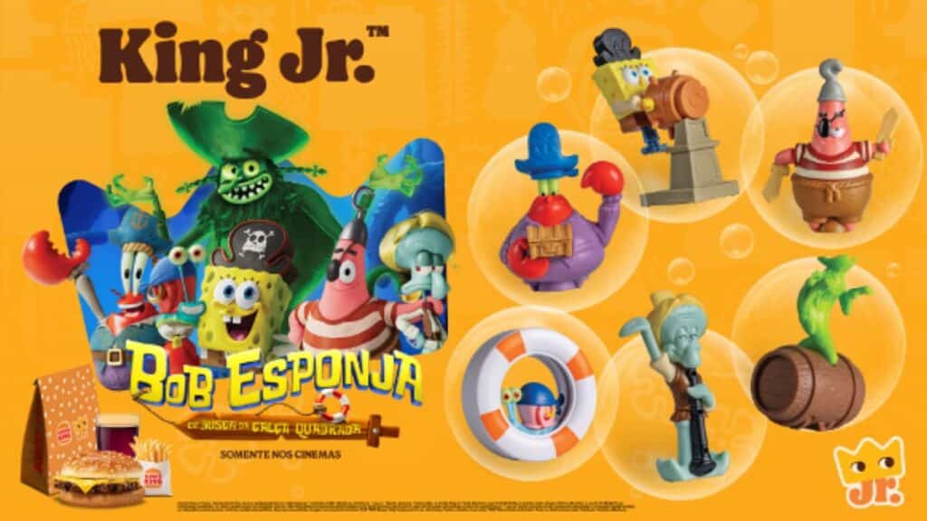 A campanha também contará com brinquedos colecionáveis como Bob Esponja, Patrick Lula Molusco, Sr. Sirigueijo, Gary e o Holandês Voador. Todos são inspirados nas vestimentas usadas pelos personagens durante o filme. Confira: