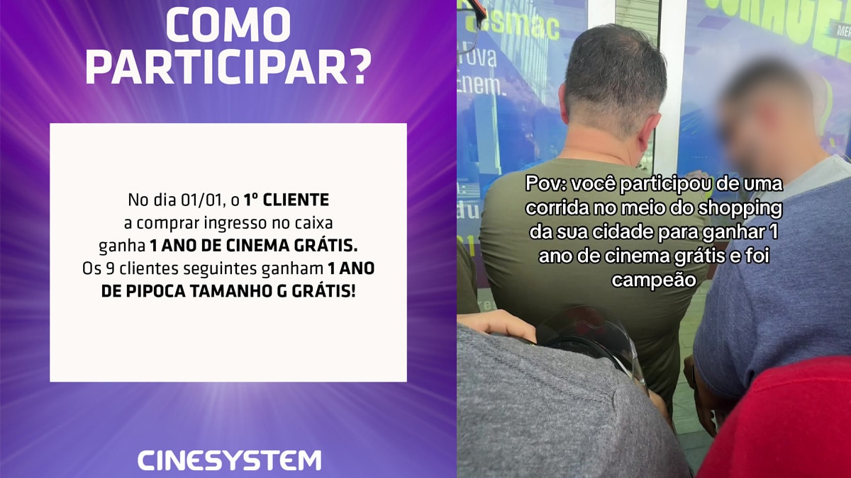 A virada de ano de 2026 prometeu ser diferente nas unidades da rede Cinesystem pelo Brasil com uma publicação ousada da rede no dia 29 de dezembro, anunciando uma promoção onde no dia 1 de janeiro o primeiro cliente a comprar ingresso presencialmente no caixa de cada cinema ganharia um ano inteiro de cinema grátis, enquanto os nove seguintes receberiam um ano de pipoca grande gratuita.