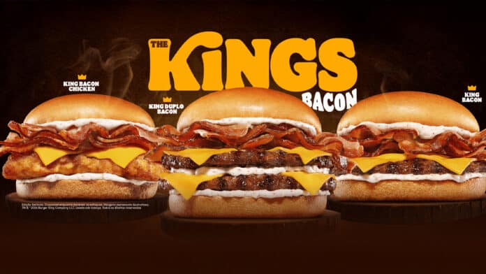 Após o anúncia de sua colaboração com a Biscoff para o lançamento de uma linha de sobremesas, o Burger King anunciou nesta segunda-feira, 19, a chegada da linha The Kings Bacon, novas opções de sanduíches premium do cardápio da rede, que deve ser posicionada entre as linhas Whopper e Mega Stacker.