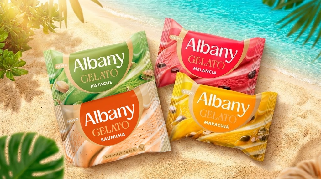 A Albany, marca da Flora especializada em produtos para banho, lançou a linha Albany Gelato. O produto consolida o recente rebranding da marca e propõe transformar o banho em um momento de pausa, combinando frescor e cremosidade.