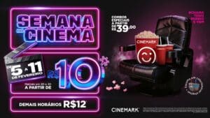 A Cinemark confirma participação e se prepara para a primeira Semana do Cinema do ano, que acontece antes do carnaval, entre 5 e 11 de fevereiro. Durante sete dias, os cinéfilos poderão conferir nas salas de cinema da Rede filmes indicados ao Oscar, como “Marty Supreme”, “O Agente Secreto”, “Avatar: Fogo & Cinzas” e “Zootopia 2” pelo valor promocional de R$ 10,00 nas sessões 2D, 3D e XD e R$20,00 nas Poltronas D-BOX e Salas Prime.