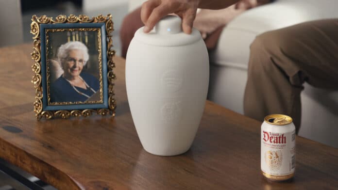 O Spotify se uniu a Liquid Death para realizar uma campanha inusitada ao lançar uma urna funerária que vem com caixinha de som acoplada. A “Eternal Playlist Urn” conta com um alto-falante Bluetooth escondido na tampa, capaz de reproduzir música de qualquer dispositivo compatível.