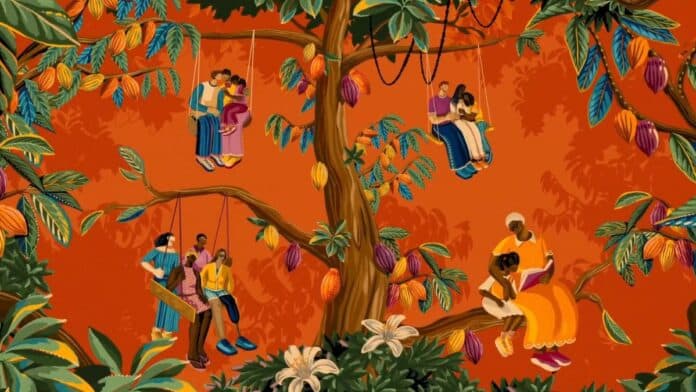 O conceito ganha vida por meio das ilustrações exclusivas feitas pela artista indígena Winny Tapajós, que traduz a conexão bem sucedida entre as pessoas e a floresta, o cacau como manifesto da generosidade da natureza, em um universo visual que revela que cada pedaço de chocolate carrega histórias reais: de quem cultiva, de quem transforma e de quem compartilha.