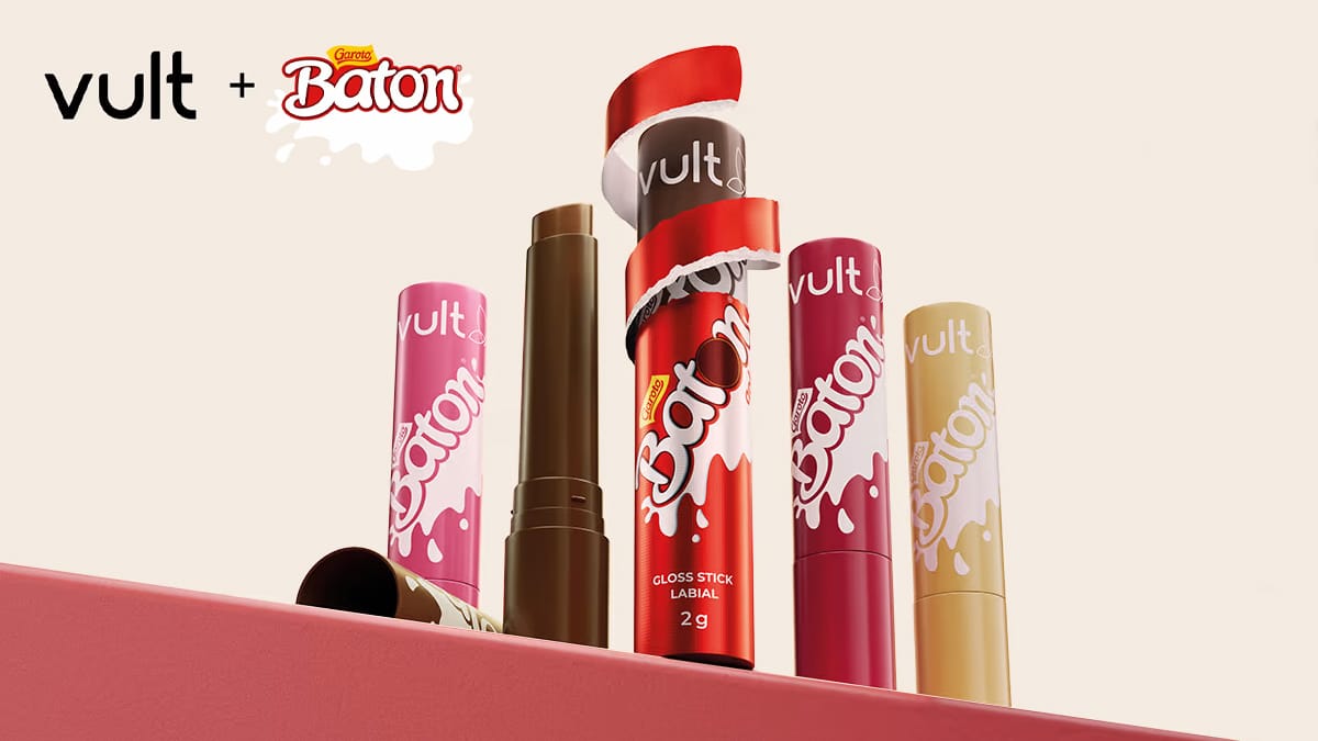 A Vult acaba de anunciar uma colaboração com o Baton, da Nestlé, que promete chamar atenção nas prateleiras de farmácias e cosméticos nesta Páscoa. A parceria resulta em uma coleção de gloss stick inspirada no clássico chocolate, um dos produtos mais associados à infância dos brasileiros.