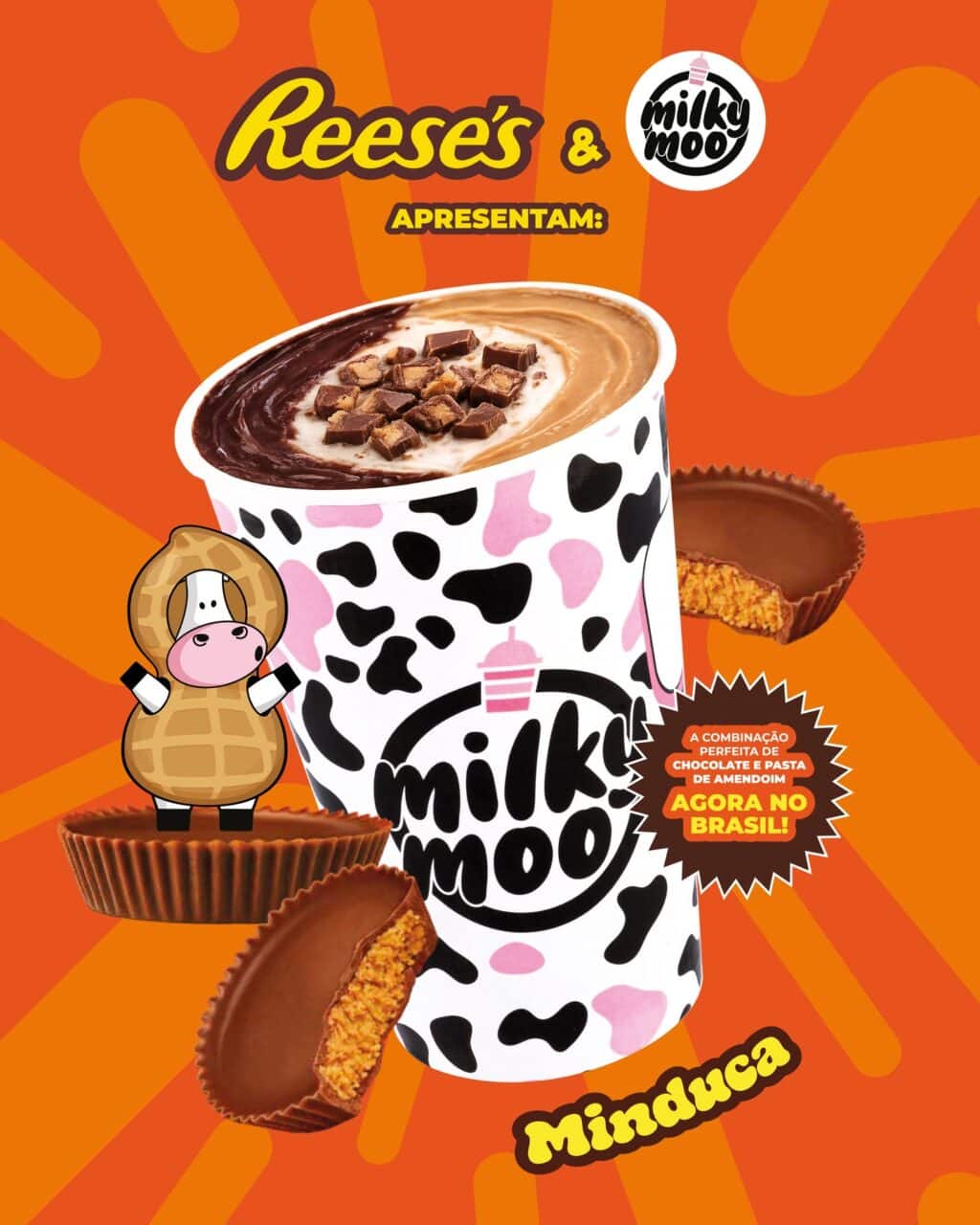 A Milky Moo anunciou que está expandindo o seu portfólio de milkshakes com o lançamento do novo sabor ‘Minduca’ em parceria com a Reese’s, marca conhecida por combinar chocolate ao leite com um recheio cremoso de pasta de amendoim.