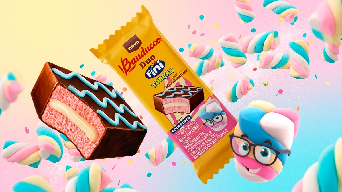 Parceiras de longa data, Fini e Bauducco voltam a se unir para lançar um sabor inédito que chega às gôndolas brasileiras e expande a linha Duo, categoria de bolinhos que se destaca pela combinação de duas texturas ou sabores. Inspirado no clássico Marshmallow Torção, um dos best-sellers da líder mundial em guloseimas, o novo produto foi batizado de Duo Fini Torção Marshmallow.