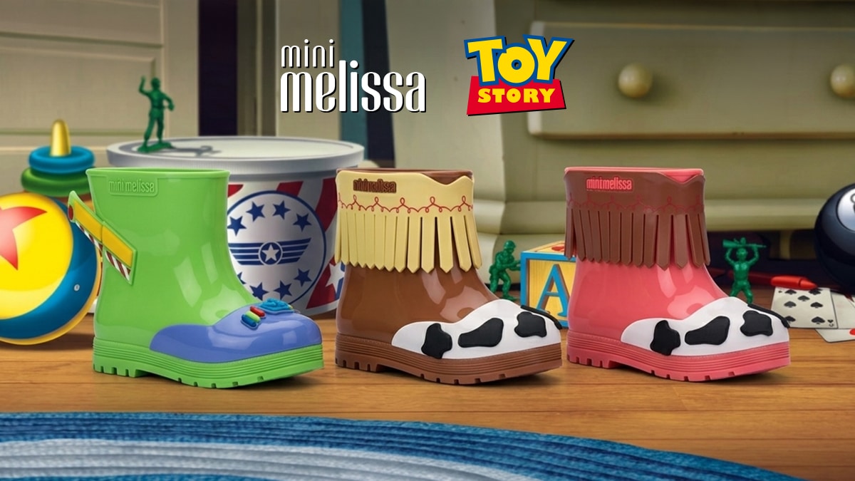 A Melissa, marca brasileira de calçados e acessórios, apresentou recentemente uma colaboração com a Disney Pixar para o lançamento de uma linha de botas infantis temáticas inspiradas na franquia Toy Story.
