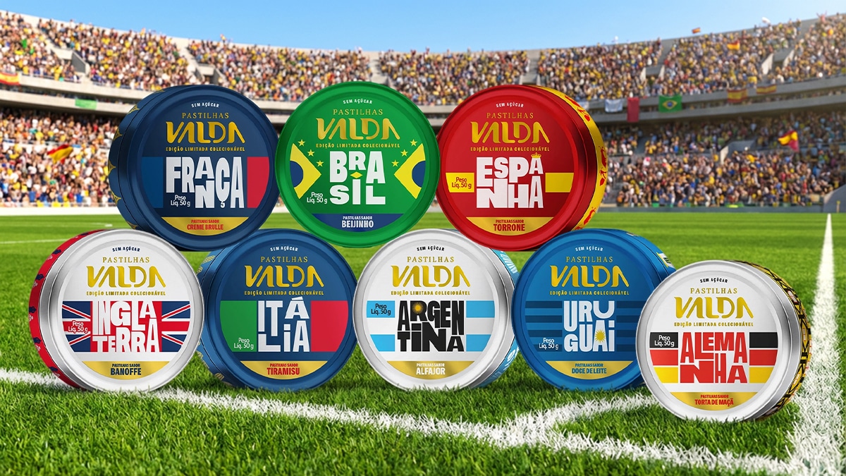 Seguindo o movimento coletivo de lançar produtos temáticos e colecionáveis para celebrar um dos torneiros mais disputados do mundo, a Pastilhas Valda, marca pastilhas, balas e gomas pertence à Eurofarma, está expandindo o seu portfólio de produtos com o lançamento da linha ‘Campeões’ em edição limitada. A marca, que já lançou colaborações com séries de sucesso como Stranger Things e Friends, agora aposta no universo dos esportes para se aproximar de diferentes públicos.