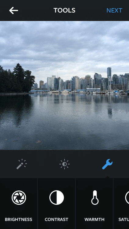 Agora, quando for selecionar um filtro, o usuário deverá ver o ícone de uma chave inglesa. Ao tocar no ícone várias ferramentas para edição da imagem deverão aparecer. Veja o vídeo que a rede disponibilizou hoje: