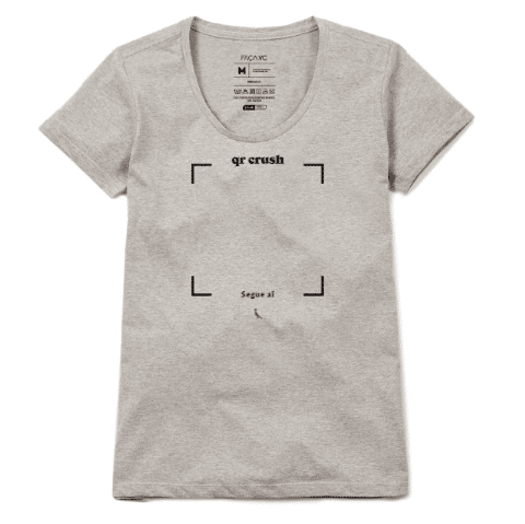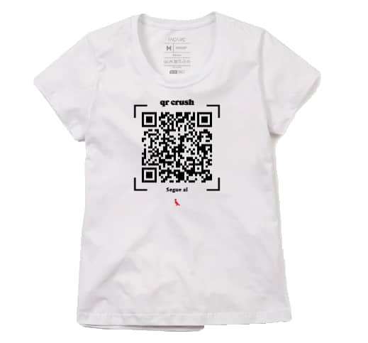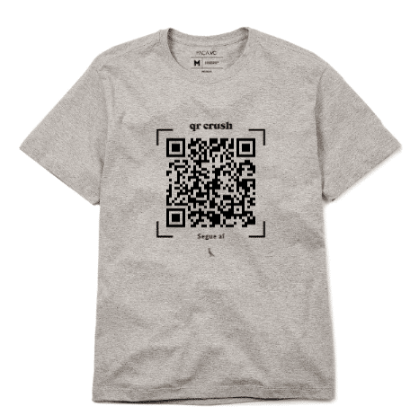 Os QR Codes (ou Crush, assim chamado pela marca) são códigos que podem ser escaneados através da câmera do celular. Eles fazem redirecionamento para algum conteúdo com facilidade e, neste caso, será para o perfil do Instagram da pessoa que estiver utilizando a camiseta. Dessa forma, fica fácil encontrar aquela paquera do bloquinho.