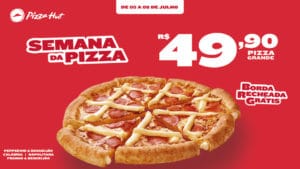 Nesta sexta-feira, dia 10 de julho, celebra-se o Dia da Pizza e a Pizza Hut não ficará de fora das comemorações deste ano. Porém, ao invés de oferecer apenas um dia de ofertas, a rede de pizzarias decidiu promover a “Semana da Pizza”, onde os consumidores poderão aproveitar borda recheada e frete grátis. As ofertas estão disponíveis para os consumidores em datas diferentes de hoje (5) até domingo (11).